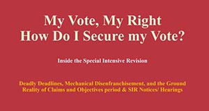 Exclusive Analysis of the BIHAR Special Intensive Revision (SIR)” on August 12, 2025. The report is available here on the VFD website, along with a detailed press note and a presentation. Together, they expose legal breaches, statistical impossibilities, and the risk of mass disenfranchisement during the Election Commission’s “Special Intensive Revision” of Bihar’s voter rolls in June–July 2025.